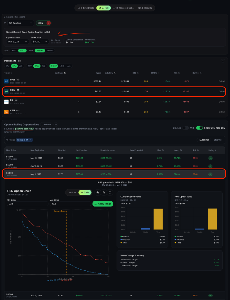 How to Roll Covered Calls for a Net Credit: A Real-World IREN Example